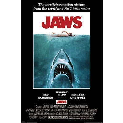 Jaws One Sheet Maxi Poster Officially licensed product Produced in the UK 61cm x 91.5cm (24 x 36 inches) in size Rolled into a cardboard shippable tube