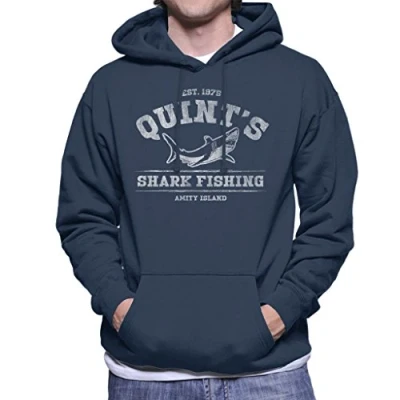 Jaws Quints Shark Fishing Men's Hooded Sweatshirt Navy Blue