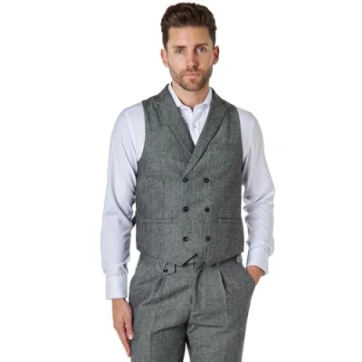 JAX Men’s Herringbone Double Breasted Collar Waistcoat Tailored Fit Retro 1920s Vest [CWDB GREY 46]