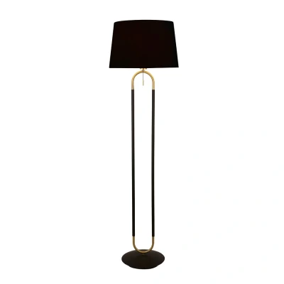 Jazz 1 Light Floor Lamp, Satin Brass And Black, Black Velvet Shade Pull Switch