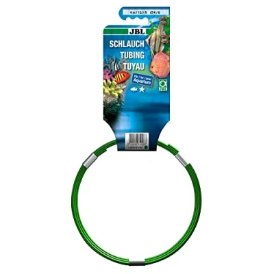 Flexible use: pre-cut hose for aquariums and ponds, available in different diameters (4/6, 9/12, 12/16, 16/22, 19/27) Ready to use: especially suitable for use with aquatic animals, free from heavy metals and other toxins High quality: for aquariums, ponds or aqua terrariums, resistant to ozone, salt, acid, alkalis, grease and solvents (non-polar) Against algae: green transparent colour for improved prevention of algae formation compared to transparent tubes Box contents: 1x JBL aqua hose, length: 4 m, diameter: 4/6 mm, colour: green, transparent, item no. 6109600, Weight: 0.2094391489 pounds, Manufacturer: JBL GmbH & Co. KG