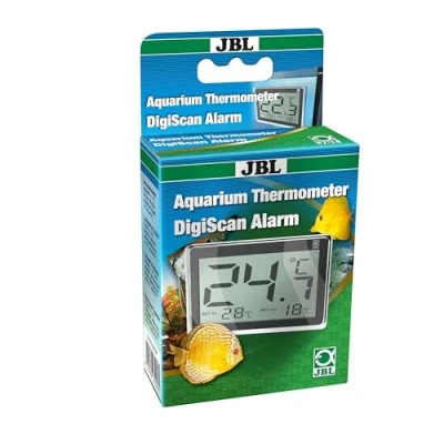Digital aquarium thermometer that displays water temperatures from 0-37 ° C in 0.1 ° C increments. Preset alarm flashes below18 and from28 ° C To attach: Insert the battery, remove the protective film and simply stick then press the thermometer onto the outside of the clean aquarium pane. The 4-part velcro sticker makes the thermometer easy to remove at any time Accuracy: +/- 1.0 °C. Battery: 1 x LR1130. Size: 5 x 3.5 cm. Digit height: 1.8 cm – easy to read. Do NOT immerse the thermometer in water! The water temperature is very precisely forwarded through the aquarium pane to the temperature contact on the back of the thermometer Scope of delivery: 1 digital aquarium thermometer with alarm function, adhesive sticker for attachment, without battery (LR1130)