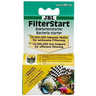 For aquarium water to suit both fish and plants: to biologically activate filters, setting up aquariums, for water changes and for re-establishing bacteria after fish diseases. For freshwater and marine aquariums, turtle and shrimp tanks For the use of new filters, after filter cleaning and the use of medication For a fast biological filter settling: breakdown of ammonium/ammonia and nitrite through highly active living bacteria Sufficient for 3 l filter material Contents: 1 pack Filterstart, 10 ml. Use: 10 ml/3 l filter material
