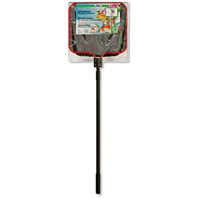For gentle catching of pond fish with soft, fine and black net, also suitable for picking up leaves Very durable, by attaching the net on the inside of the aluminium holder, telescopic handle extends from 95 to 160 cm, total length max. 195 cm Extremely stable 4-point mounting of the power supply on the extendable aluminium handle, mesh width 0.35 mm, net: 40 x 35 cm Foam grip at the end of the handle for a secure grip, sturdy 1.1 cm thick red (invisible from fish) aluminium holder of the net Box contents: 1x JBL pond net S fine, 40 x 35 cm catch net, telescopic handle (95 - 160 cm), weight: 580 g, 2870400