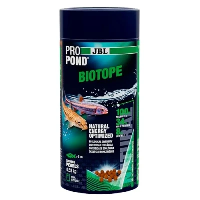 Species-appropriate nutrition for all small, native biotope fish (at a water temperature of 10-30 °C) Complete food with a protein/fat ratio of 4:1. Most biotope fish are omnivores, often favouring microorganisms and planktonic feeder animals With insect proteins, shrimps and plant components for a near-natural diet for biotope fish such as the moderlieschen, gudgeon, stickleback, minnow, etc. Sinking granulated food in pearl form with 34 % protein, 8 % fat, 4 % crude fibre and 12 % crude ash. Without preservatives Granulated food in a resealable, airtight, waterproof and lightproof can for quality preservation. The mono-material of the bag/can can be completely recycled without separation