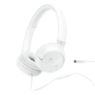 JBL Tune 530 C Comfort Fit Wired On Ear Headphones with Microphone, Pure Bass Sound, EQ Presets, USB Connectivity, Foldable Design and Tangle Free Cable, White