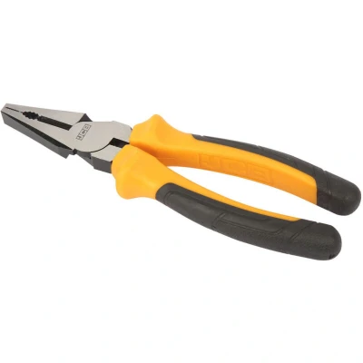 ManoManoGeneral description JCB 180mm (7in.) Combination Pliers are designed for durability and comfort. Made with a chrome vanadium steel head, these pliers feature a corrosion-resistant coating and a high leverage design for efficient use. The serrated jaws provide a secure grip, while the cushion grip handle ensures greater comfort and control during operation. Technical specifications Length: 180mm (7in.) Jaw width: 25mm Material: Chrome vanadium steel Coating: Corrosion resistant Usage Ideal for gripping, twisting, and cutting various materials. Suitable for both professional and DIY applications.