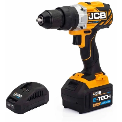 JCB 18V Brushless Cordless Combi Drill, 5ah Battery, Fast Charger, Variable Speed, LED Light, Belt Clip, Rubber Grip, 3Y Warranty, Li ion, 13mm, 1800rpm, 65Nm, UK Support
