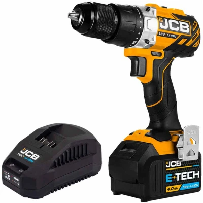 JCB 18v Cordless Brushless Drill Driver with 4.0ah Lithium ion Battery, Fast Charger, 2 Speed, 19+1 Position, Built in Led Light and 3 Year Warranty