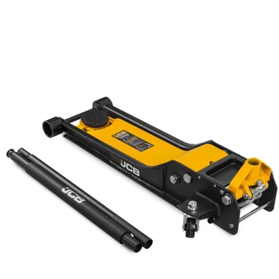 JCB 2 Tonne Automotive Low Profile Double Pump Long Jack, 610mm Max.Height 3 Year Warranty, Yellow, Black