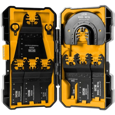 JCB 8 piece multi tool blade set compatible with corded and cordless multi tools. Universal fit - compatible with most branded multi tools Set contains blades suitable for working with metal and wood Variety of blade shapes and sizes for different applications Made from toughened steel Safely stored in moulded, durable case for easy care. Compatible with JCB 18V multi tools