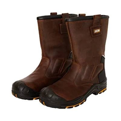 JCB Denstone Brown Rigger Boot 100% Metal Free Boots for Men Waterproof Fibreglass Toecap Shoes Men's Work & Utility Footwear 8