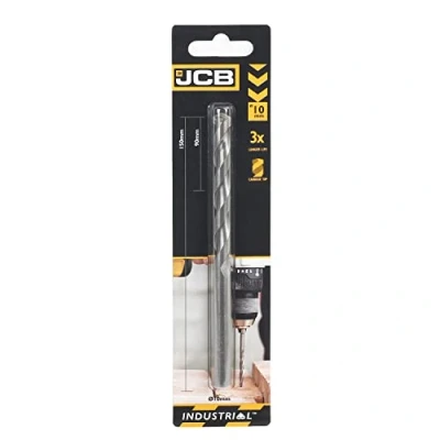 Precision Ground Flute: Experience improved drilling performance and control with our precision-ground flute design. This innovative feature ensures accuracy and efficiency in every drill. Carbide Tip Construction: The carbide tip construction enhances durability, making the JCB Masonry Drill Bit a reliable choice for tough materials. This robust design ensures a longer lifespan, saving you both time and money on replacements. Optimised for Cordless Power Tools: Say goodbye to frequent battery changes. The JCB Masonry Drill Bit's smoothing drilling action requires less energy, contributing to an extended battery life for your cordless power tools. Increase productivity without compromising on performance. Versatile Material Compatibility: Built with carbon steel, this drill bit is engineered to handle denser building materials effortlessly. Its durable material and design make it the ideal choice for various construction applications. Pack Content 1 x JCB Masonry Dril l Bitt 10 x 150 mm