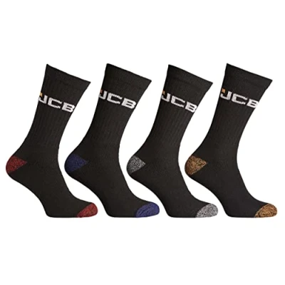 JCB Men's Black Workwear Boot Socks 4 Pairs U.K. Size 6 11 Reinforced Work (UK, Numeric, 6, 11, Regular, Mix)