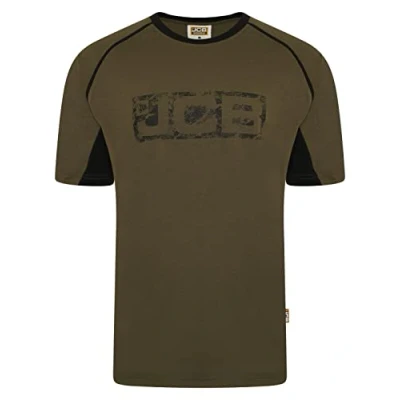 JCB Workwear Trade Work T Shirt Mens for Distressed Logo Contrast Accents 100% Cotton Olive/Black Size L