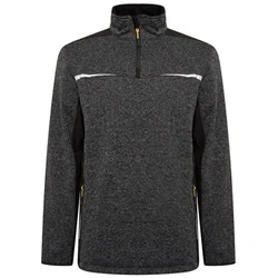 Men's Jumpers: Iconic JCB work clothes for men Knitted sweatshirt fabric: 100% Polyester, 370gsm Crafted with soft-shell fabric to give this work jumper added durability - 100% stretch polyester 280gsm Grey Sweatshirt: Quarter zip style with two side zip access pockets Reflective JCB work wear branding: High visibility flashes front and back for added safety Mens jumpers with elasticated binding at cuffs Safe Work Wear Clothing: Reflective tape on chest and shoulders for protection Comfy Work Fleece: Fleece lined funnel collar Elasticated drawcord at hem Great Gifts for Men: Easy to wear under your work jacket or waterproof workwear