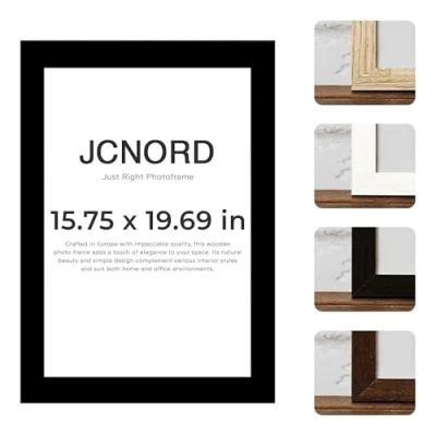 🇪🇺 𝗘𝘂𝗿𝗼𝗽𝗲𝗮𝗻 𝗖𝗿𝗮𝗳𝘁𝘀𝗺𝗮𝗻𝘀𝗵𝗶𝗽: Our frames are skillfully handcrafted in Europe by master artisans with great attention to detail. Quality control standards at JCNORD ensure that each frame not only brings your memories to life, but also adds finesse to your interior design 💎 𝗣𝗿𝗲𝗺𝗶𝘂𝗺 𝗠𝗗𝗙 𝗣𝗶𝗰𝘁𝘂𝗿𝗲 𝗙𝗿𝗮𝗺𝗲: Expertly crafted from high-quality, thick MDF wood with a depth of 18 mm and a width of 15 mm, ensuring exceptional durability and long-lasting quality. Our frames are made of Shatterproof Acrylic Glass to protect your precious memories. The reinforced back panel is fitted with additional clips to prevent the picture from slipping and provide extra protection 📐 𝗣𝗿𝗲𝗰𝗶𝘀𝗲 𝗗𝗶𝗺𝗲𝗻𝘀𝗶𝗼𝗻𝘀: Our frame measures 40 x 50 cm, with external dimensions of 42.9 x 52.9 cm, a profile width of 18 mm, a profile depth of 15 mm and a weight of 0.90 kg 🖼️ 𝗖𝘂𝘀𝘁𝗼𝗺𝗶𝘇𝗮𝗯𝗹𝗲 𝗛𝗮𝗻𝗴𝗶𝗻𝗴 𝗢𝗽𝘁𝗶𝗼𝗻𝘀: With clips for vertical or horizontal placement, our frame offers versatility for any space and enhances your interior design with its timeless beauty 🎨 𝗘𝗹𝗲𝗴𝗮𝗻𝘁 𝗕𝗹𝗮𝗰𝗸 𝗙𝗶𝗻𝗶𝘀𝗵: Our frames feature a stunning black color that blends seamlessly into any interior and adds an elegant accent. The durable paint and varnish provide a striking color brilliance while allowing for easy cleaning to maintain its beauty for a long period of time