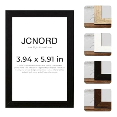 🇪🇺 𝗘𝘂𝗿𝗼𝗽𝗲𝗮𝗻 𝗖𝗿𝗮𝗳𝘁𝘀𝗺𝗮𝗻𝘀𝗵𝗶𝗽: Our frames are skillfully handcrafted in Europe by master artisans with great attention to detail. Quality control standards at JCNORD ensure that each frame not only brings your memories to life, but also adds finesse to your interior design 💎 𝗣𝗿𝗲𝗺𝗶𝘂𝗺 𝗠𝗗𝗙 𝗣𝗶𝗰𝘁𝘂𝗿𝗲 𝗙𝗿𝗮𝗺𝗲: Expertly crafted from high-quality, thick MDF wood with a depth of 18 mm and a width of 15 mm, ensuring exceptional durability and long-lasting quality. Our frames are made of Shatterproof Acrylic Glass to protect your precious memories. The reinforced back panel is fitted with additional clips to prevent the picture from slipping and provide extra protection 📐 𝗣𝗿𝗲𝗰𝗶𝘀𝗲 𝗗𝗶𝗺𝗲𝗻𝘀𝗶𝗼𝗻𝘀: Our frame measures 10 x 15 cm, with external dimensions of 12.9 x 17.9 cm, a profile width of 18 mm, a profile depth of 15 mm and a weight of 0.15 kg 🖼️ 𝗖𝘂𝘀𝘁𝗼𝗺𝗶𝘇𝗮𝗯𝗹𝗲 𝗛𝗮𝗻𝗴𝗶𝗻𝗴 𝗢𝗽𝘁𝗶𝗼𝗻𝘀: With clips for vertical or horizontal placement, our frame offers versatility for any space and enhances your interior design with its timeless beauty 🎨 𝗘𝗹𝗲𝗴𝗮𝗻𝘁 𝗕𝗹𝗮𝗰𝗸 𝗙𝗶𝗻𝗶𝘀𝗵: Our frames feature a stunning black color that blends seamlessly into any interior and adds an elegant accent. The durable paint and varnish provide a striking color brilliance while allowing for easy cleaning to maintain its beauty for a long period of time