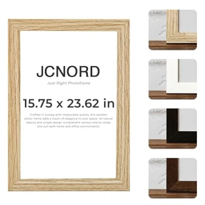 🇪🇺 𝗘𝘂𝗿𝗼𝗽𝗲𝗮𝗻 𝗖𝗿𝗮𝗳𝘁𝘀𝗺𝗮𝗻𝘀𝗵𝗶𝗽: Our frames are skillfully handcrafted in Europe by master artisans with great attention to detail. Quality control standards at JCNORD ensure that each frame not only brings your memories to life, but also adds finesse to your interior design 💎 𝗣𝗿𝗲𝗺𝗶𝘂𝗺 𝗠𝗗𝗙 𝗣𝗶𝗰𝘁𝘂𝗿𝗲 𝗙𝗿𝗮𝗺𝗲: Expertly crafted from high-quality, thick MDF wood with a depth of 18 mm and a width of 15 mm, ensuring exceptional durability and long-lasting quality. Our frames are made of Shatterproof Acrylic Glass to protect your precious memories. The reinforced back panel is fitted with additional clips to prevent the picture from slipping and provide extra protection 📐 𝗣𝗿𝗲𝗰𝗶𝘀𝗲 𝗗𝗶𝗺𝗲𝗻𝘀𝗶𝗼𝗻𝘀: Our frame measures 40 x 60 cm, with external dimensions of 42.9 x 62.9 cm, a profile width of 18 mm, a profile depth of 15 mm and a weight of 1.00 kg 🖼️ 𝗖𝘂𝘀𝘁𝗼𝗺𝗶𝘇𝗮𝗯𝗹𝗲 𝗛𝗮𝗻𝗴𝗶𝗻𝗴 𝗢𝗽𝘁𝗶𝗼𝗻𝘀: With clips for vertical or horizontal placement, our frame offers versatility for any space and enhances your interior design with its timeless beauty 🎨 𝗘𝗹𝗲𝗴𝗮𝗻𝘁 𝗢𝗮𝗸 𝗙𝗶𝗻𝗶𝘀𝗵: Our frames feature a stunning oak color that blends seamlessly into any interior and adds an elegant accent. The durable paint and varnish provide a striking color brilliance while allowing for easy cleaning to maintain its beauty for a long period of time
