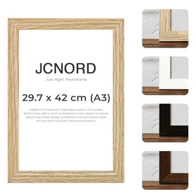 🇪🇺 𝗘𝘂𝗿𝗼𝗽𝗲𝗮𝗻 𝗖𝗿𝗮𝗳𝘁𝘀𝗺𝗮𝗻𝘀𝗵𝗶𝗽: Our frames are skillfully handcrafted in Europe by master artisans with great attention to detail. Quality control standards at JCNORD ensure that each frame not only brings your memories to life, but also adds finesse to your interior design 💎 𝗣𝗿𝗲𝗺𝗶𝘂𝗺 𝗠𝗗𝗙 𝗣𝗶𝗰𝘁𝘂𝗿𝗲 𝗙𝗿𝗮𝗺𝗲: Expertly crafted from high-quality, thick MDF wood with a depth of 18 mm and a width of 15 mm, ensuring exceptional durability and long-lasting quality. Our frames are made of Shatterproof Acrylic Glass to protect your precious memories. The reinforced back panel is fitted with additional clips to prevent the picture from slipping and provide extra protection 📐 𝗣𝗿𝗲𝗰𝗶𝘀𝗲 𝗗𝗶𝗺𝗲𝗻𝘀𝗶𝗼𝗻𝘀: Our frame measures 29.7 x 42 cm (A3), with external dimensions of 32.6 x 44.9 cm, a profile width of 18 mm, a profile depth of 15 mm and a weight of 0.65 kg 🖼️ 𝗖𝘂𝘀𝘁𝗼𝗺𝗶𝘇𝗮𝗯𝗹𝗲 𝗛𝗮𝗻𝗴𝗶𝗻𝗴 𝗢𝗽𝘁𝗶𝗼𝗻𝘀: With clips for vertical or horizontal placement, our frame offers versatility for any space and enhances your interior design with its timeless beauty 🎨 𝗘𝗹𝗲𝗴𝗮𝗻𝘁 𝗢𝗮𝗸 𝗙𝗶𝗻𝗶𝘀𝗵: Our frames feature a stunning oak color that blends seamlessly into any interior and adds an elegant accent. The durable paint and varnish provide a striking color brilliance while allowing for easy cleaning to maintain its beauty for a long period of time