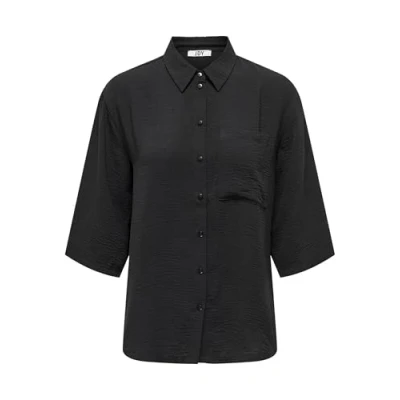 JDY Divya 3/4 Loose Buttondown blouse, Women's, Size: Large, Black