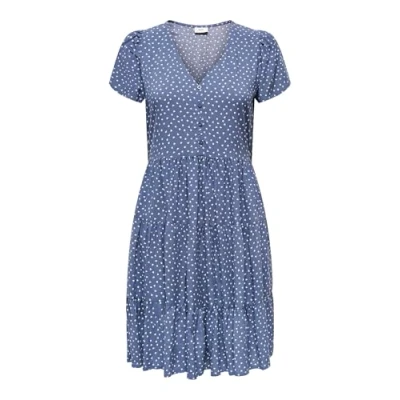 JDY JDYSezen Life Women's Viscose Short Sleeve Summer Dress with Hearts Knee Length, Blue, XL