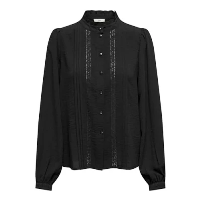 JdY Women's Ellis L/S Lace Shirt WVN Noos Long Sleeve Blouse, Black, 10