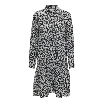 JDY Women's Jdypiper L/S Shirt Dress WVN Noos, Black/AOP: White Flower, 8
