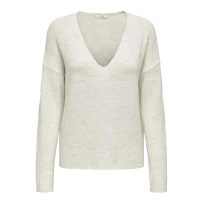 JDY Women's Jdyelanora L/S V Neck Jumper KNT Noos Knitted Jumper, Cloud Dancer/Detail: Melange, S
