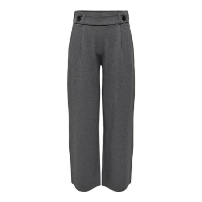 JdY Women's Jdygeggo New Long Pant JRS Noos Pleated Trousers, Medium Grey Melange/Detail: Black Buttons, XXL / 30L