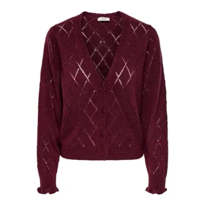 JdY Women's Jdyletty Letty L/S V Neck Struc Cardi KNT Noos, Maroon Banner, XXL