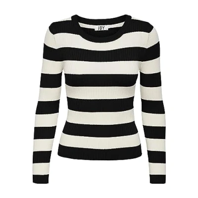 JdY Women's JDYPLUM L/S O Neck Stripe Pull. KNT NOOS Knitted Sweater, Black/Stripes:W Eggnog Stripes,