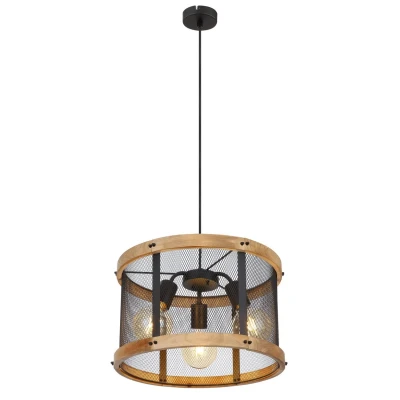 The JEANIE Vintage pendant lamp impresses with its charming design in retro style. The round shade is finished with a wooden frame and metal mesh, which creates an interesting contrast between rustic wood in dark brown and matt black metal. The body is made of black frosted metal and dark brown wood, which gives the lamp an elegant vintage look. With a diameter of 400mm and a power of 40W, the pendant lamp produces enough light for the room. The interplay of wood and metal creates a special accent that harmoniously rounds off the design of the pendant lamp. The JEANIE Vintage pendant lamp is ideal for those who are looking for stylish lighting with a retro look. Product features: Pendant lamp metal black matt, wood dark brown, metal black matt, cable textile black, ø: 400mm, h: 1200mm, excl. 3x e27 40w 230v
