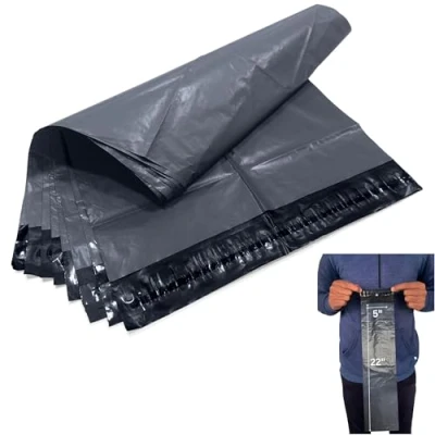 JeeJaan® 100 Grey Parcel Bags 5" x 22" (127 558 mm) Courier Mailer Plastic Envelopes Durable Packaging Shipping Waterproof and Tear Proof Postal Bag
