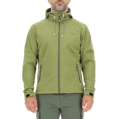 JEEP O102882 E100 J MAN HOODED SOFTSHELL JACKET W/Zipped Pockets Small Print J23W Olive Green S