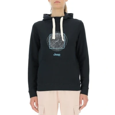 JEEP O102918 B000 J WOMAN HOODED SWEATSHIRT Log Ring Large Print W/Pouch Pocket J23W Black M