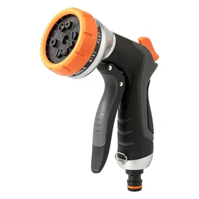 10 VERSATILE SPRAY PATTERNS - From a gentle shower for delicate seedlings to a powerful jet for cleaning patios. Includes jet, shower, cone, mist, flat, centre, and angle patterns for every garden task COMFORTABLE & ERGONOMIC DESIGN - Features a soft, non-slip rubberised grip and easy-press lever to prevent hand fatigue during long watering sessions LEAK-FREE UNIVERSAL CONNECTOR - Equipped with a durable fitting that ensures a secure, tight seal to your standard UK garden hose (3/4 inch), preventing drips and water waste BUILT TO LAST - Constructed from high-quality, impact-resistant materials and featuring a robust trigger mechanism for reliable performance season after season MULTI-PURPOSE GARDENING ESSENTIAL - Perfect for efficiently watering flower beds and lawns, washing the family car, bathing dogs, and cleaning patio furniture, fences, and pathways, Manufacturer: JelKen
