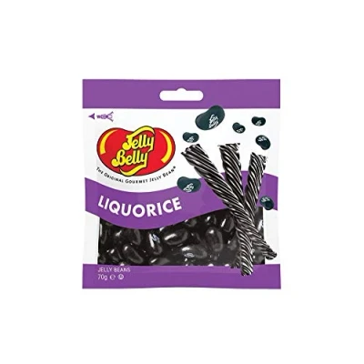 Jelly Belly 70g Liquorice Re-sealable Grab and Go Bag - Pack of 12 Kosher Suitable for vegetarians, gluten free Alcohol Free, Peanut and Nut Free True-to-life mouth-watering flavours