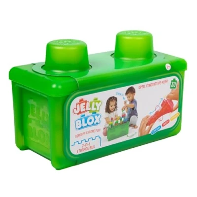 Jelly Blox are a unique building system that kids can squeeze, stretch, and squish! Crafted to aid developmental milestones through tactile, sensory play, Jelly Blox delivers jiggly construction fun. Plus, some blocks are filled with exciting materials like sand, foam balls, mini stars, and mini bricks for added sensory fun! For parents, peace of mind comes standard - Jelly Blox are safety-tested and ouch-free, sparing bare feet if they’re accidentally stepped on. With Jelly Blox, it's all about bending the rules and stretching imaginations. Flip the lid and build your Jelly Blox creations on top with 30 included Blox, when you’re done, use as a storage case for your Jelly Blox collection. Recommended for ages 2+, Manufacturer: Goliath Games