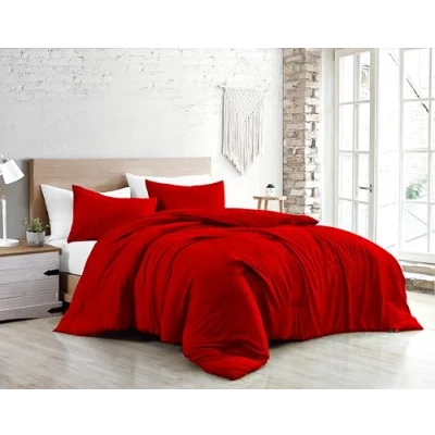 Jenny Sesal Bed Duvet Cover Set Solid Colour 100% Pure Cotton Made in Italy Double Single + Pillowcases (Red, Queen Size)