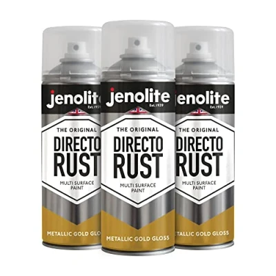 JENOLITE Directorust Metallic Gloss Spray Paint Gold 3x400ml Multi Surface for Metal, Wood, Plastic All In_OnePrimer, Undercoat and Topcoat Interior & Exterior