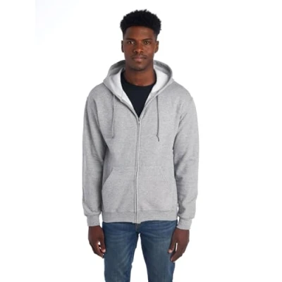 Jerzees Men's Fleece Hooded Sweatshirt, Full Zip Heather Grey, Large