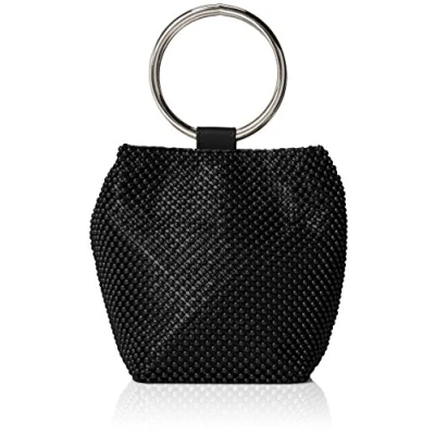 Jessica McClintock Women's Gwen Ball Mesh Ring Wristlet Pouch Clutch Evening Bag, Black, One Size