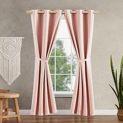 Jessica Simpson Faye Textured Ultimate Blackout Curtains Set of 2 Panels and Tiebacks Privacy Drapes Premium Grommet Header 38" x 84" Rose