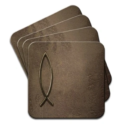 Jesus Fish Symbol On Brown Stone Christian Set of 4 Coasters