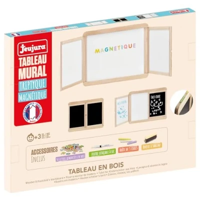 Jeujura Magnetic Triptych Wall Chart A White Central Slate with Face and Chalk Many Accessories Ages 3 Above Made in France 8807