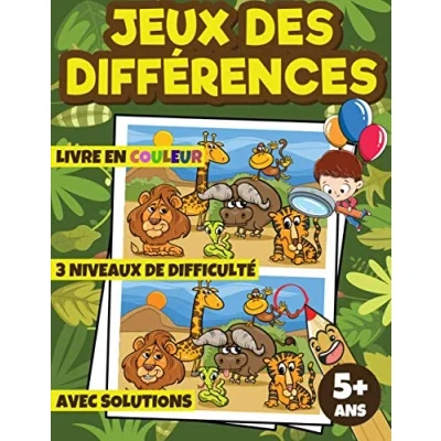 Jeux des différences 5 ans +: Cherche les differences pour enfants de 5, 6, 7 et plus ! Livre entièrement en couleur (Format Géant), Cahier ... énigme défis sur animaux autre