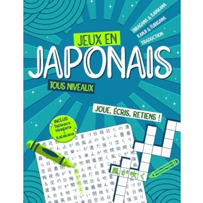 Jeux en japonais ! +800 expressions Tous niveaux Vocabulaire Débutant & Intermédiaire Hiragana, Katakana et Kanji: Mots mêlés casés Joue, écris, retiens JLPT (Japonais ludique)