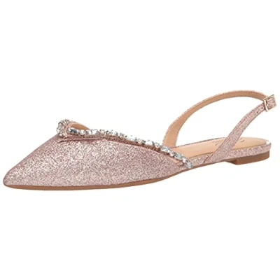Jewel Badgley Mischka Women's Camden Ballet Flat, Rosegold Glitter, 5 UK
