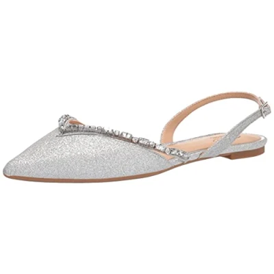 Jewel Badgley Mischka Women's Camden Ballet Flat, Silver Glitter, 7 UK